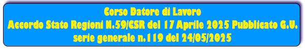 Corsi e Aggiornamenti per la Sicurezza e Salute nei luoghi di Lavoro, ai sensi del D.Lgs. 81/08 Testo Unico Sicurezza, per Professionisti, Aziende ed Enti, ai sensi dell’ACCORDO STATO REGIONI REP.ATTI N.59 del 19/04/2025 pubblicato in G.U. SERIE GENERALE n.119 ed entrato in vigore il 24/05/2025(Abroga i precedenti Accordi del 2011,2012 e 2016).
