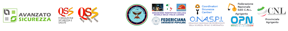 Il SOGGETTO FORMATORE E’ LA CNL CONFEDERAZIONE NAZIONALE DEL LAVORO AG(FEDERAZIONE DATORIALE elenco Reg.SICILIA SOGGETTI FORMATORI AG_288) in collaborazione con OPN ITALIA LAVORO AG(elenco Reg.SICILIA SOGGETTI FORMATORI AG_289) E OPE SCUOLA EDILE come ORGANISMI PARITETICI ART.51 D.LGS 81/08 e D.D.N.12 DEL22/02/2023 REP.NAZ.ORGANISMI PARITETICI MINISTERO DEL LAVORO.